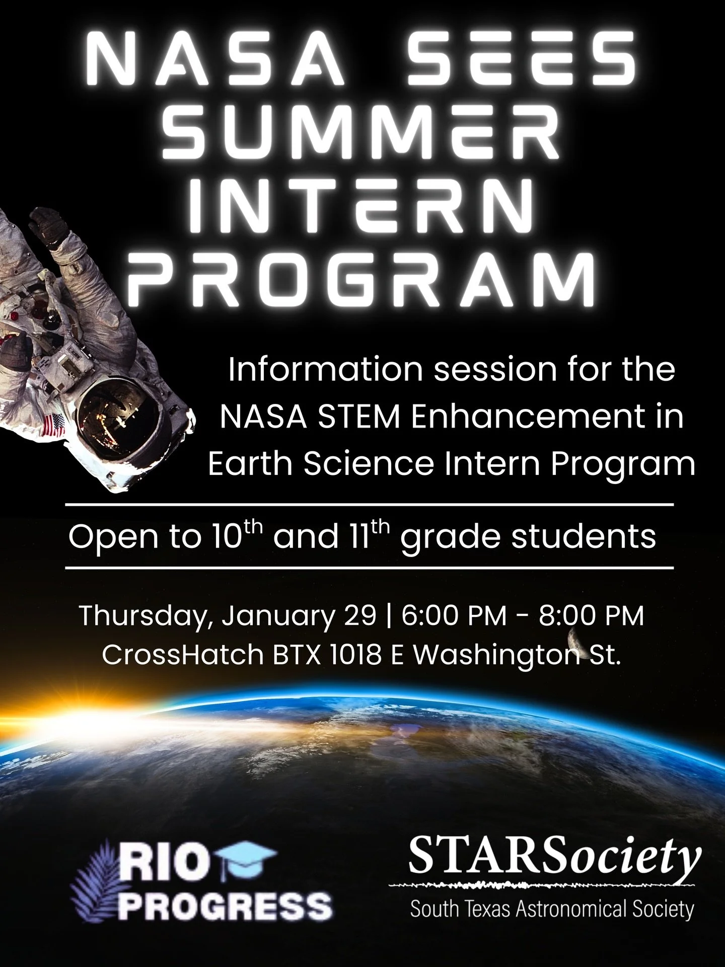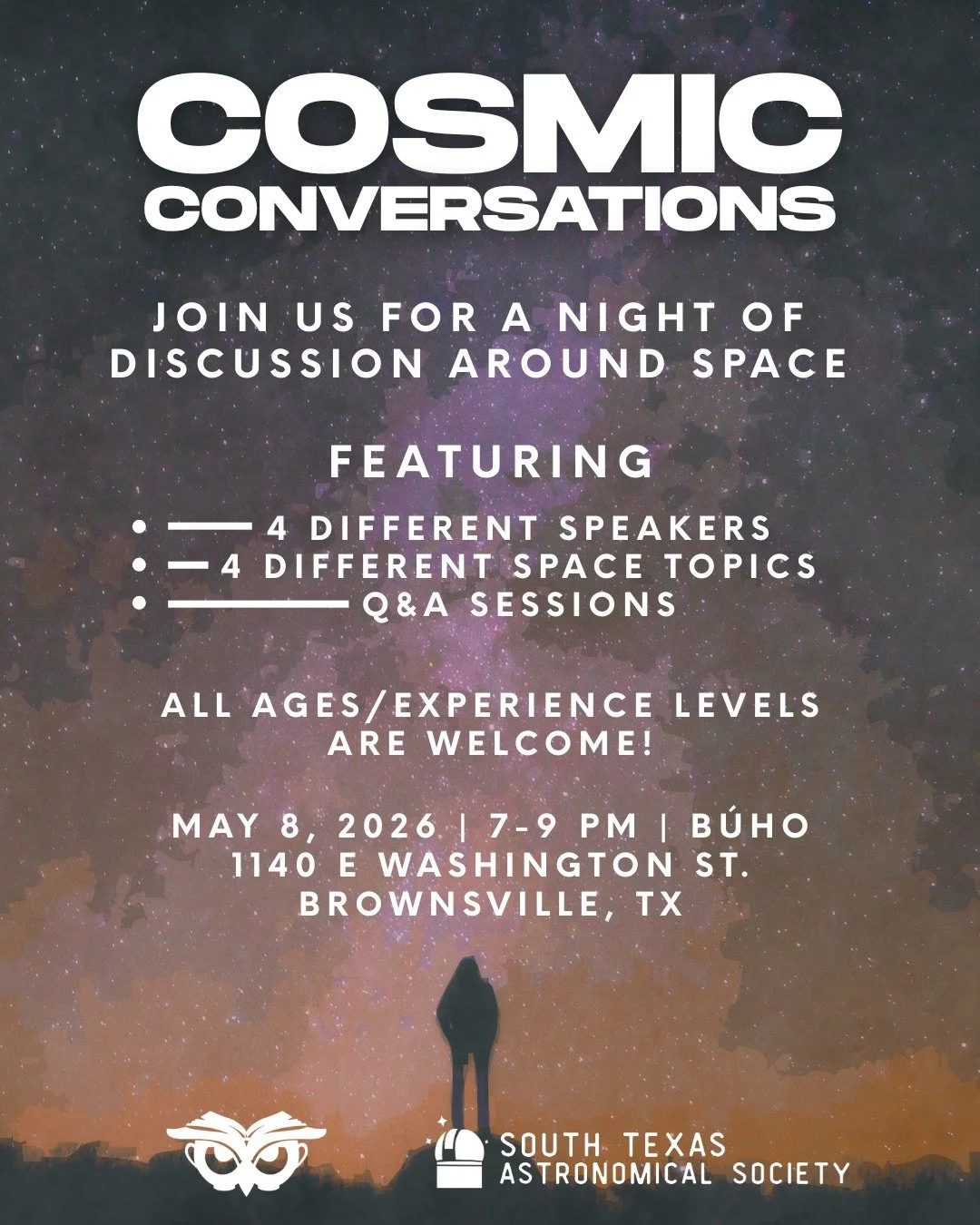 The South Texas Astronomical Society (STARSociety) is a 501(c)(3) nonprofit organization on a mission to ignite lifelong curiosity through space science education, outreach programs, and by expanding access to STEM opportunities in the Rio Grande Valley.